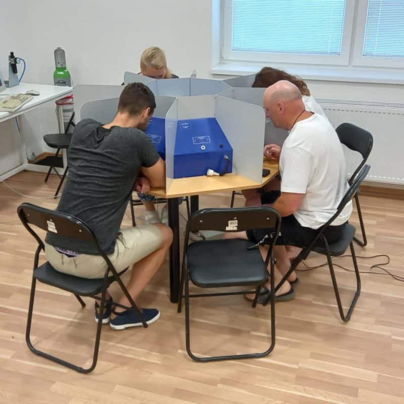 1. Nejprve se testovaný prostor zamoří pachy a provede se první odběr vzorků.